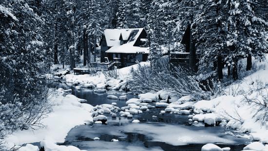 Обои Одинокий дом в зимнем лесу