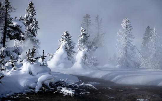 Обои Зимний лес в пасмурную погоду