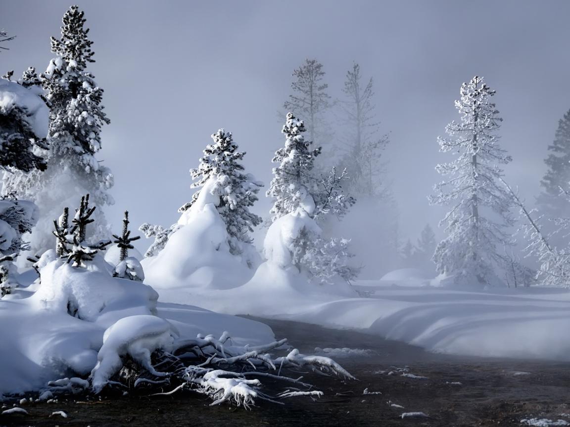 Обои Зимний лес в пасмурную погоду