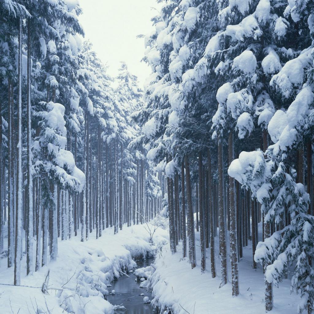 Обои Ручей зимнем лесу
