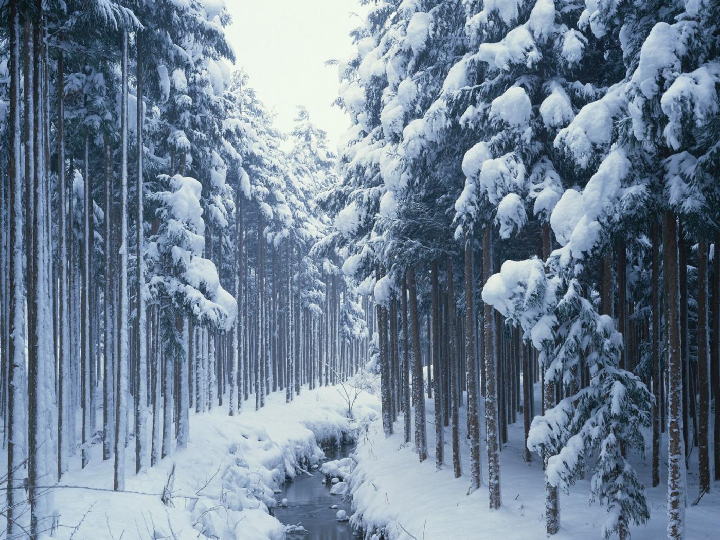 Обои Ручей зимнем лесу