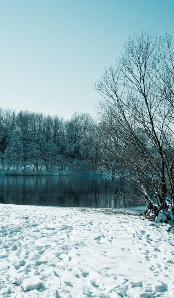 Обои Берег озера покрытый снегом