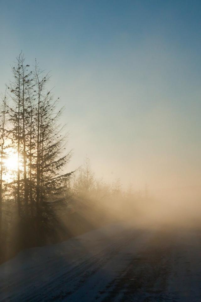 Обои Морозное утро на дороге