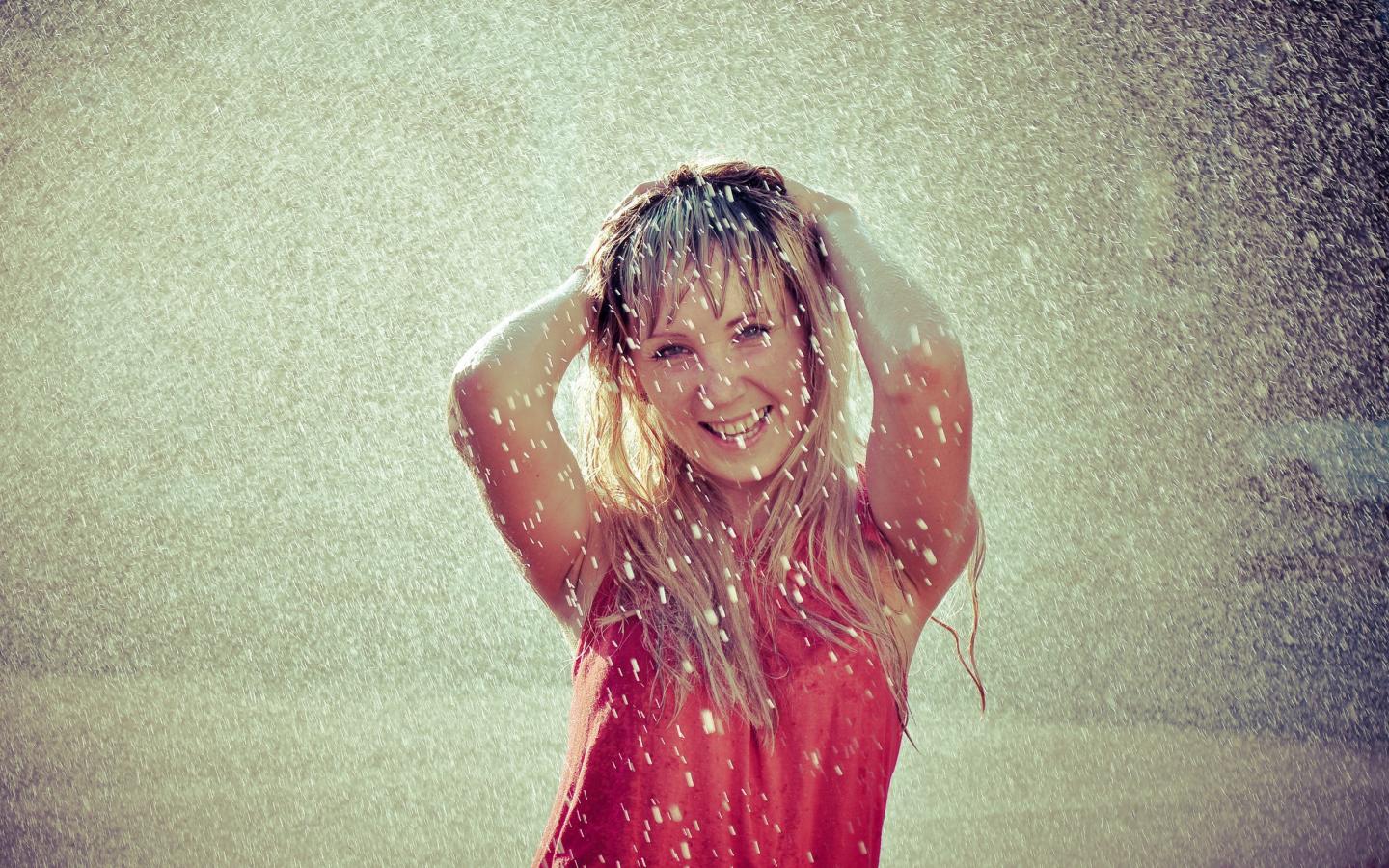 Обои Девушка под идущим снегом