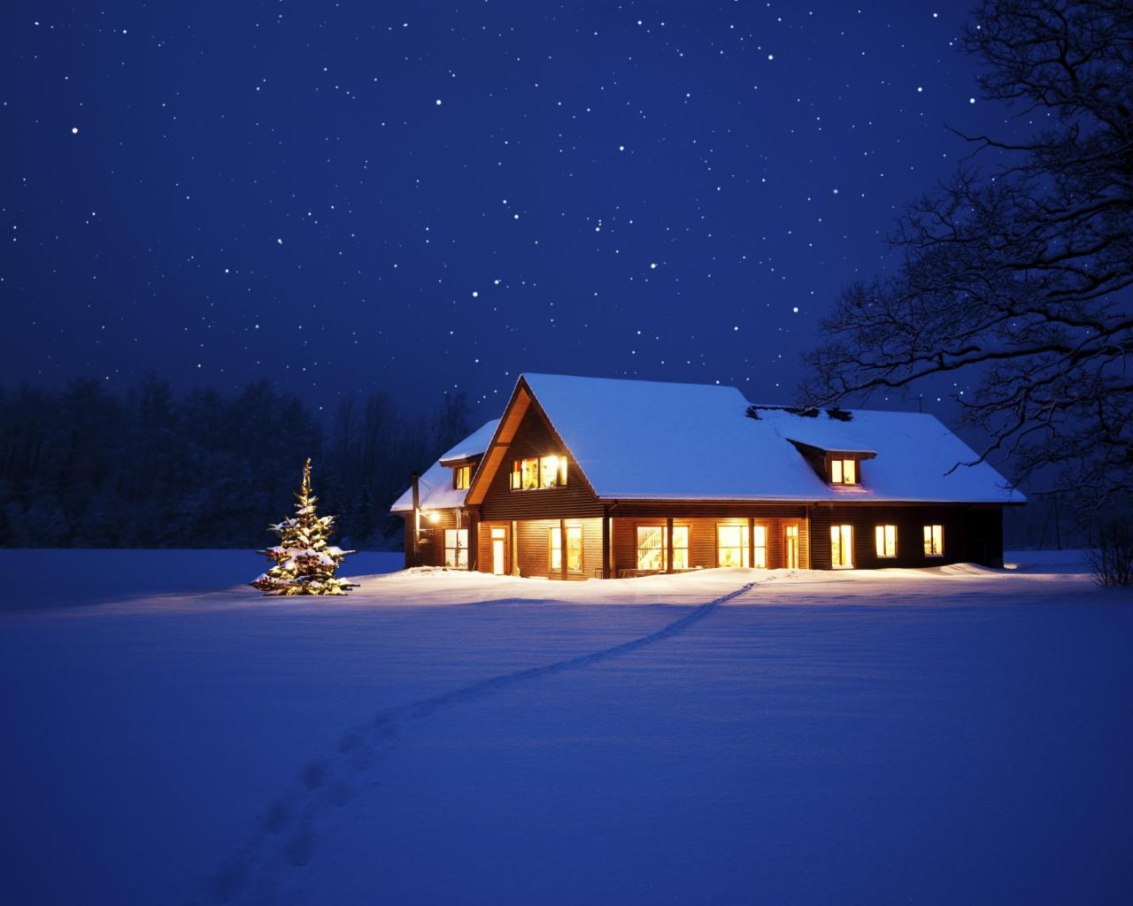 Обои Одинокий дом в снегу