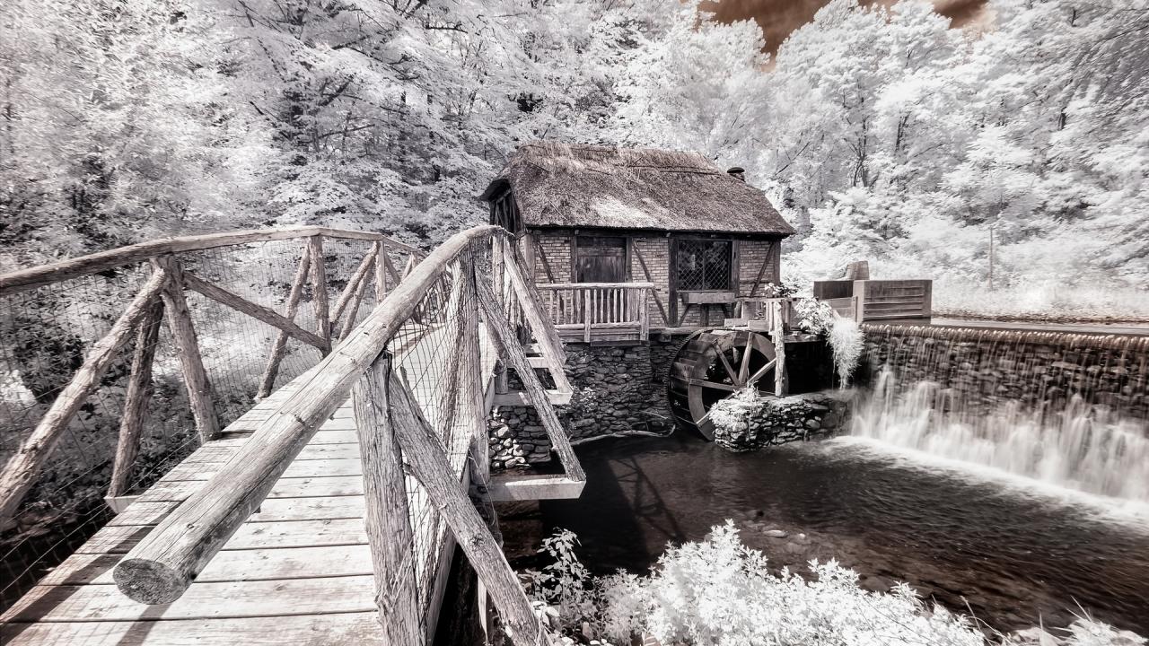 Обои Дом, Мост, монохром, Успокаивающие