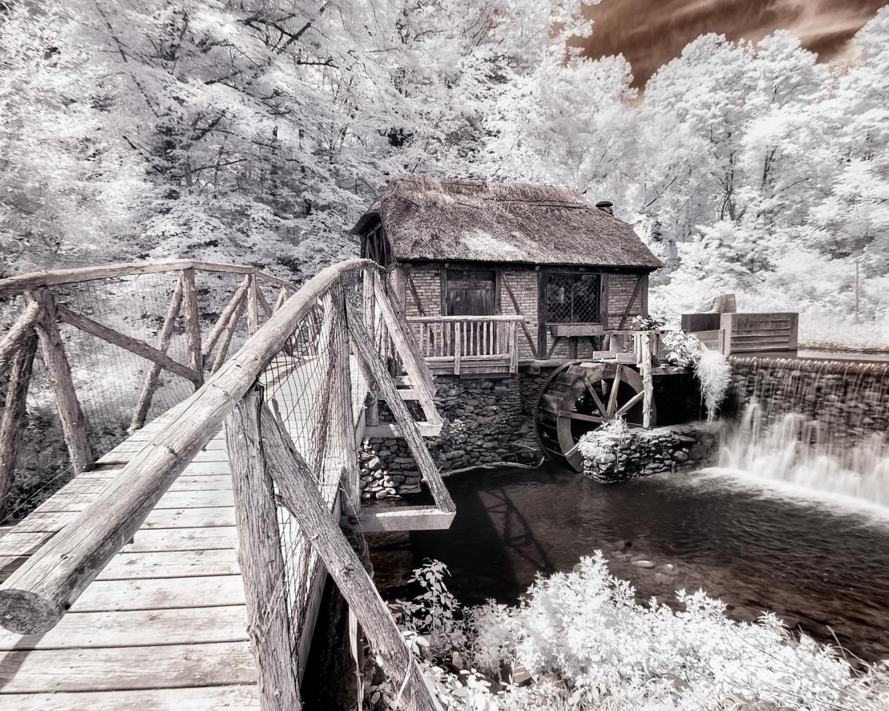 Обои Дом, Мост, монохром, Успокаивающие