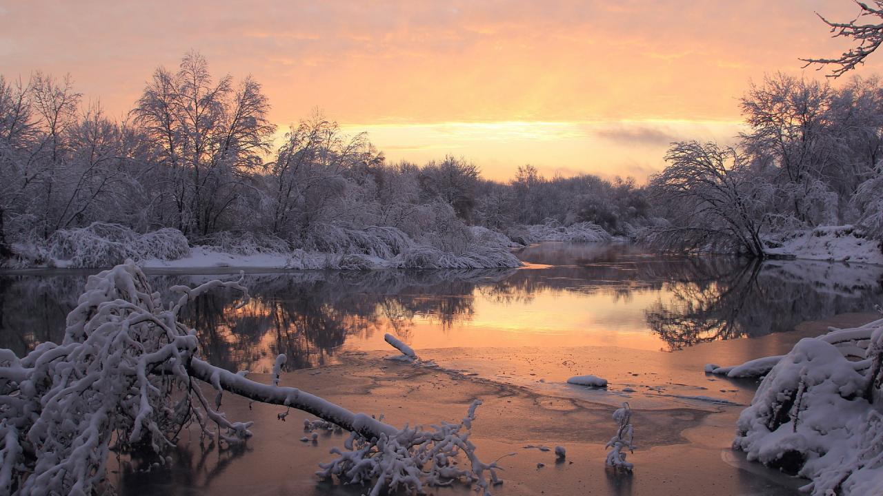 Обои Снег, Пейзаж, Вода