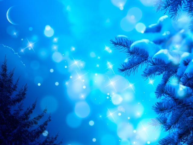 » Обои Снег, Луна, Звезды
