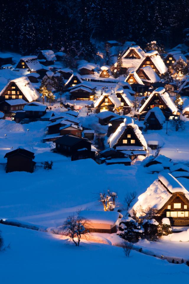 Обои Снег, Ночь, Зимняя ночь, Огни