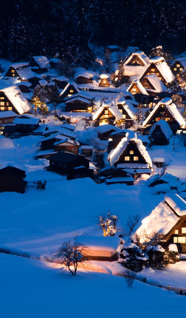 Обои Снег, Ночь, Зимняя ночь, Огни