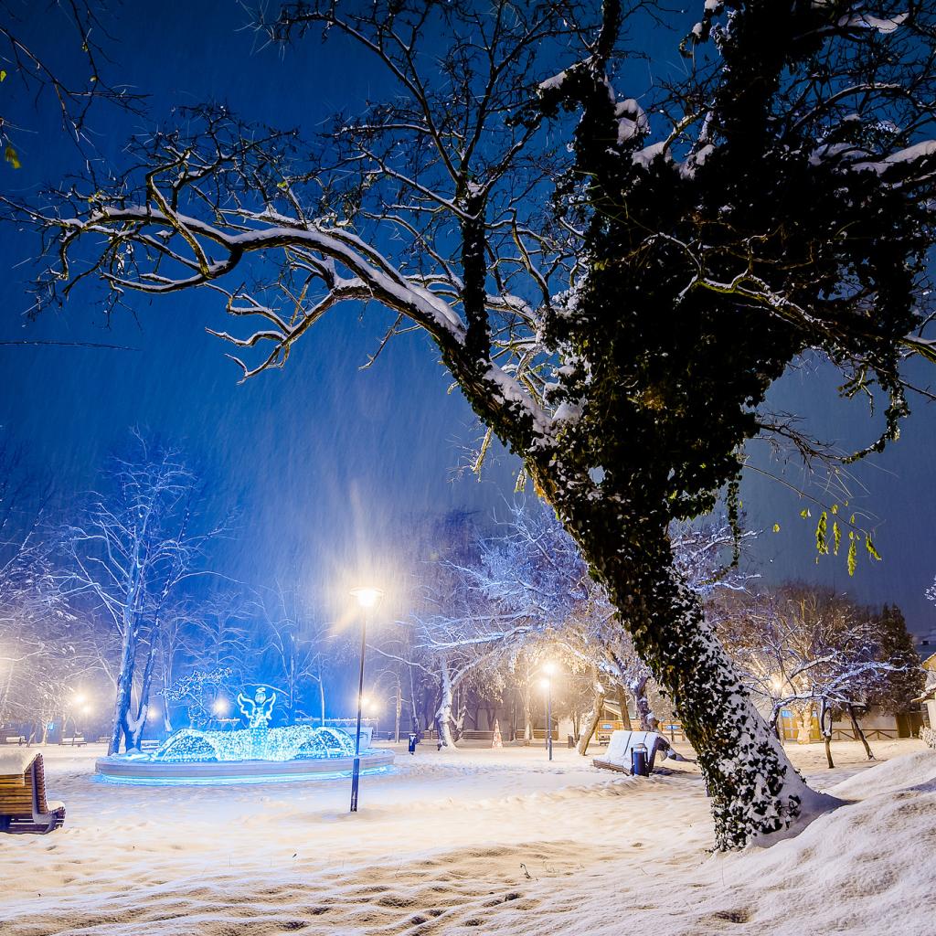 Обои Снег, Деревья, Ночь, Зимняя ночь