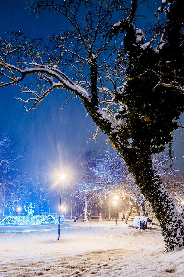 Обои Снег, Деревья, Ночь, Зимняя ночь
