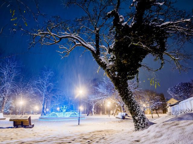 Обои Снег, Деревья, Ночь, Зимняя ночь
