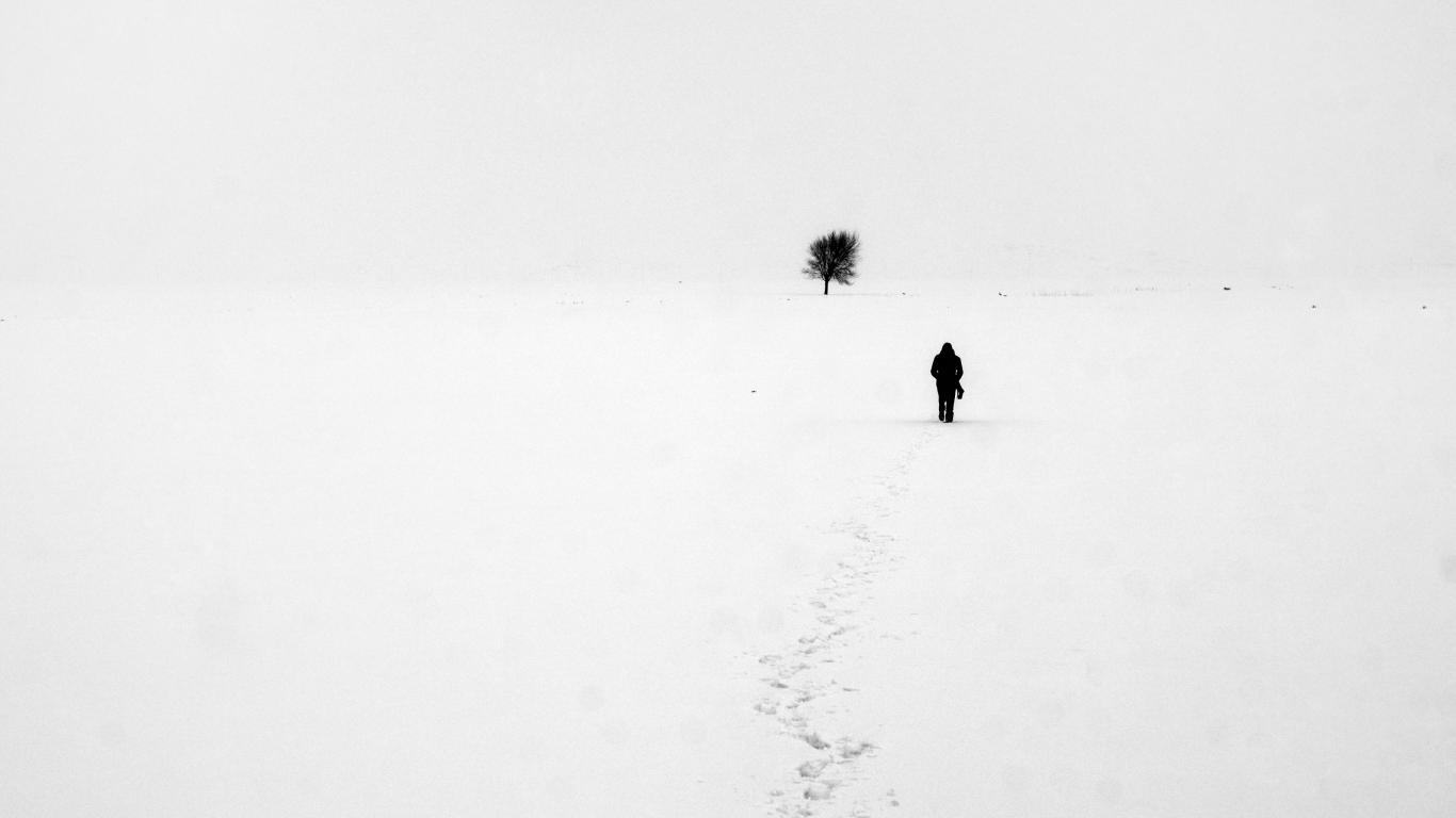 Обои Снег, Одинокий человек, Голое дерево, Одиночество