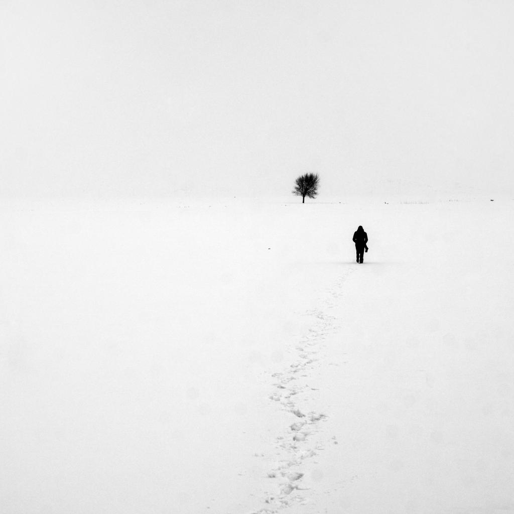 Обои Снег, Одинокий человек, Голое дерево, Одиночество
