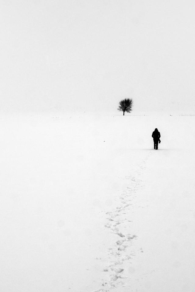 Обои Снег, Одинокий человек, Голое дерево, Одиночество