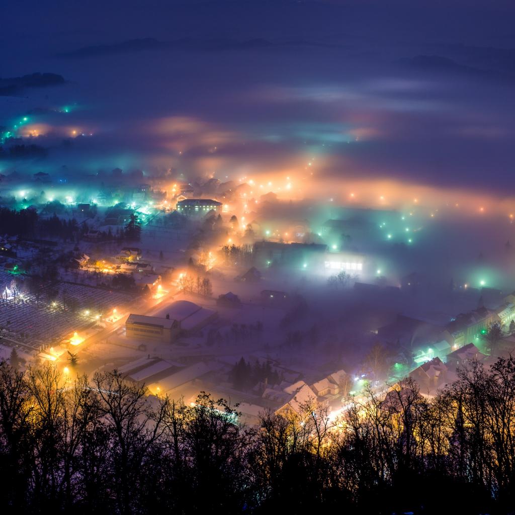 Обои Снег, Хорватия, Зимняя ночь, Огни