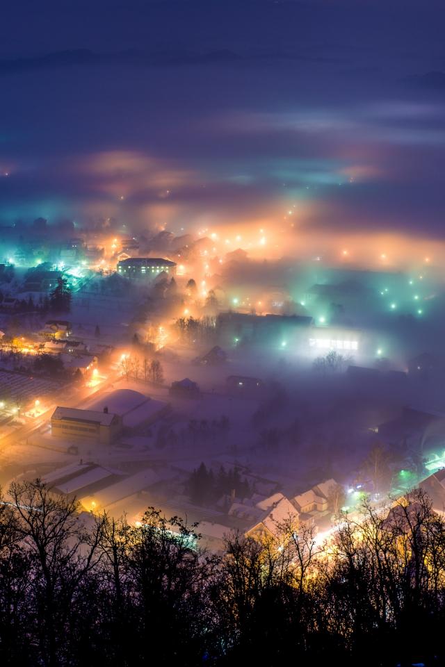 Обои Снег, Хорватия, Зимняя ночь, Огни