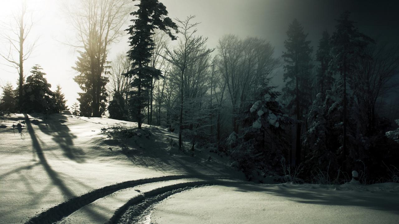 Обои Автомобильные следы на снегу