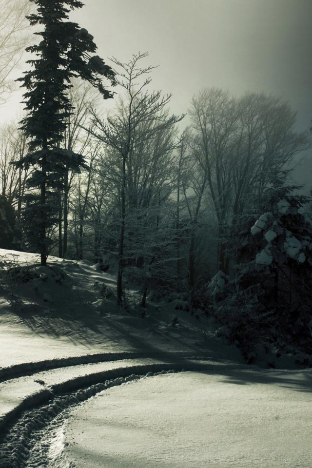 Обои Автомобильные следы на снегу
