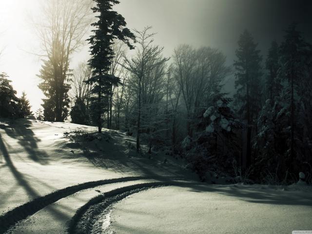 Обои Автомобильные следы на снегу