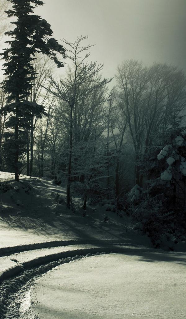 Обои Автомобильные следы на снегу