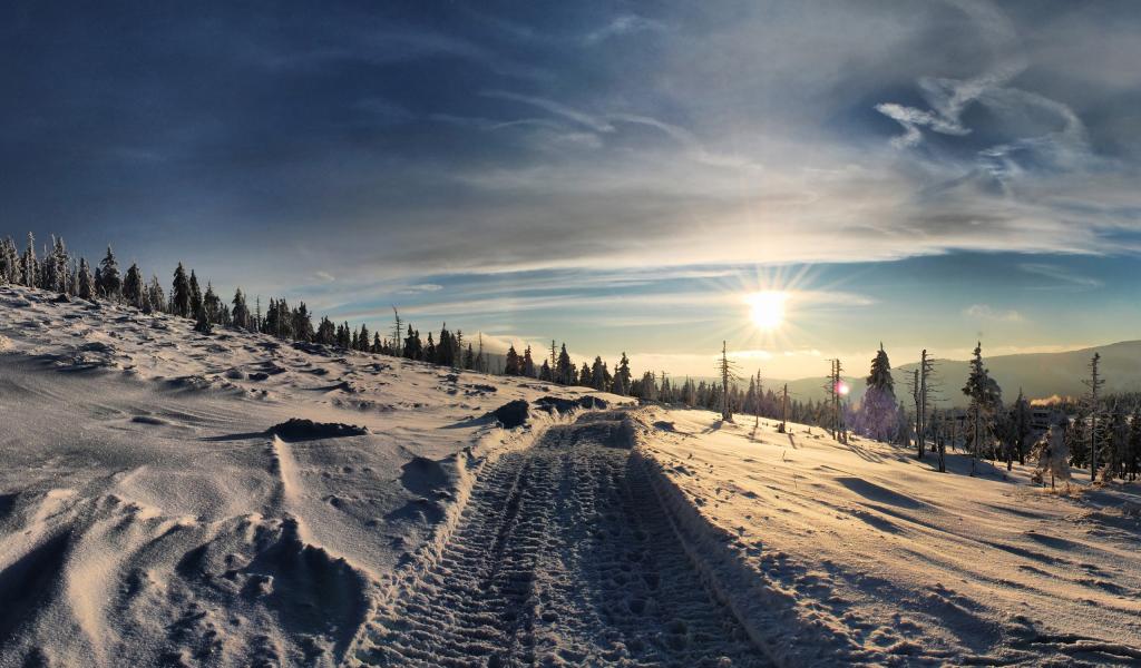 Обои Следы снегохода