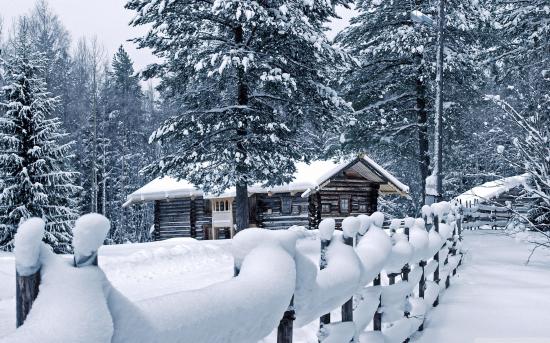 Обои Домик в деревне зимой