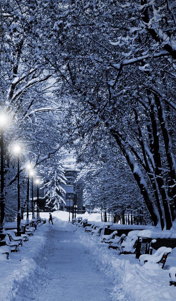 Обои Зимний вечер на улице