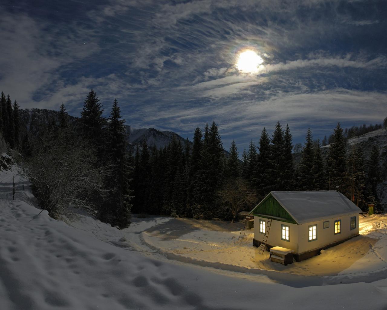 Обои Зимний вечер в лесу