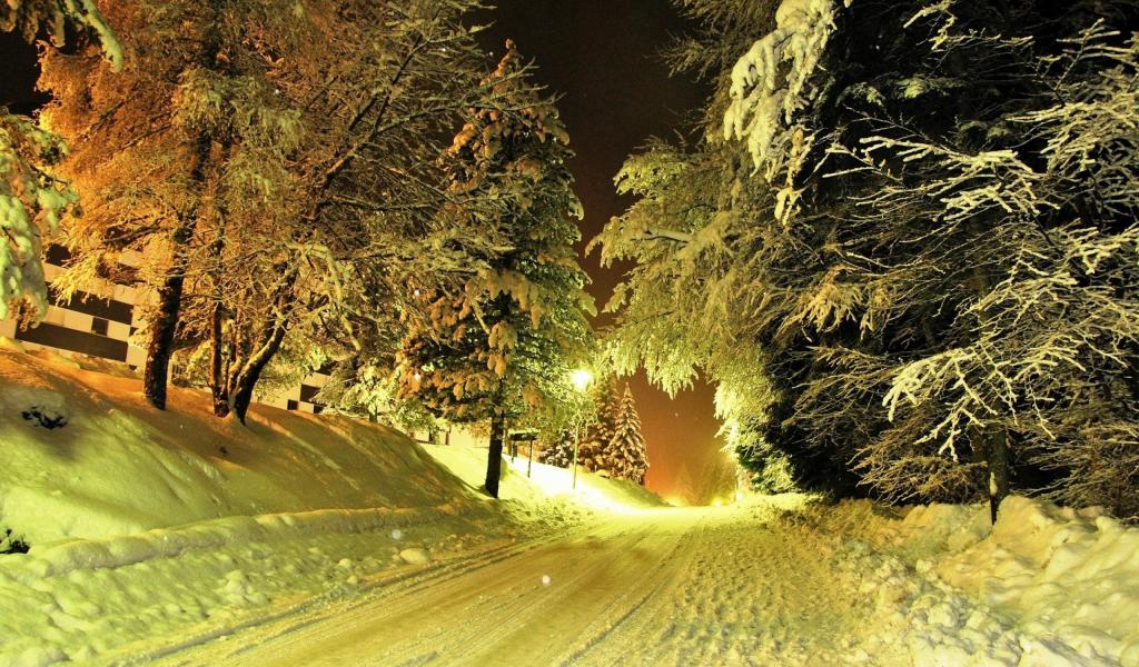 Обои Заснеженная дорога в лесу