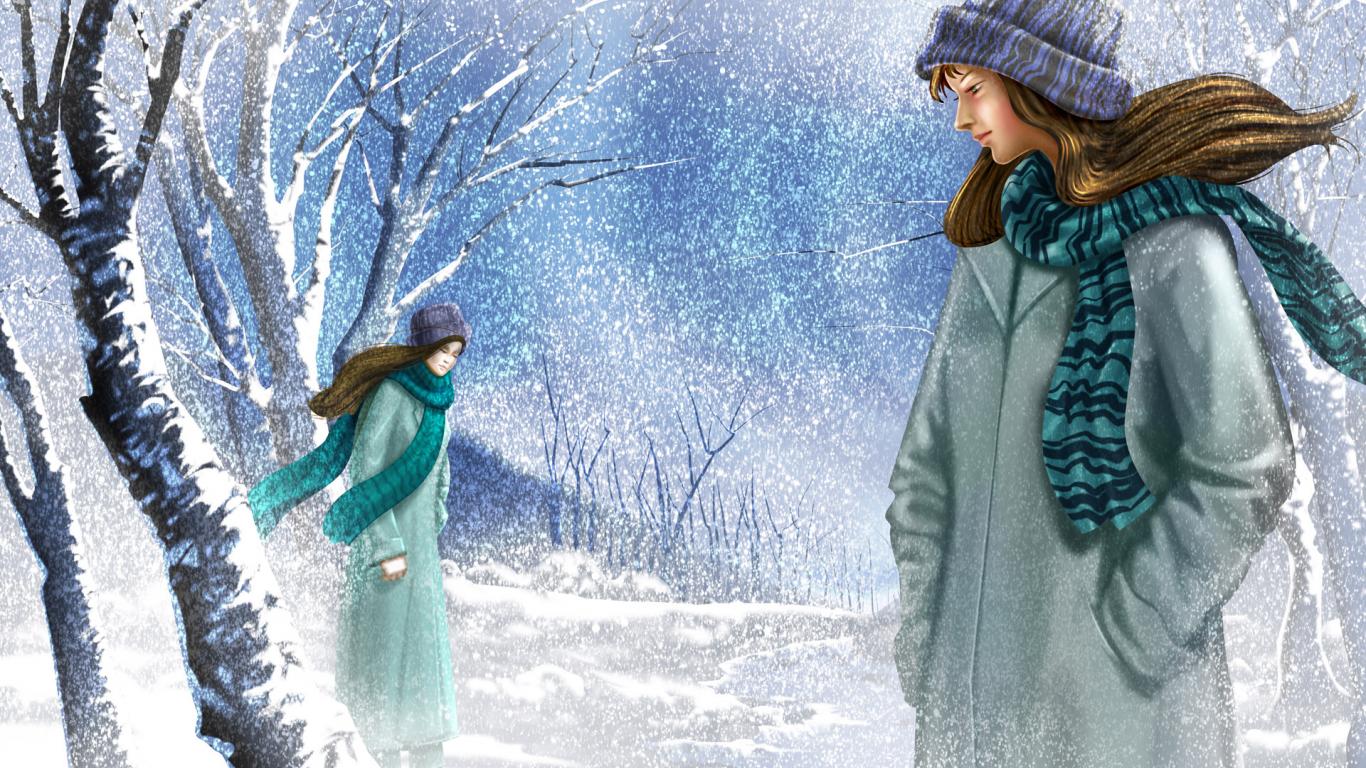 Обои Прогулка в зимнем парке