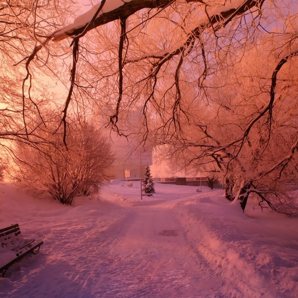Обои Розовый снег в зимнем парке