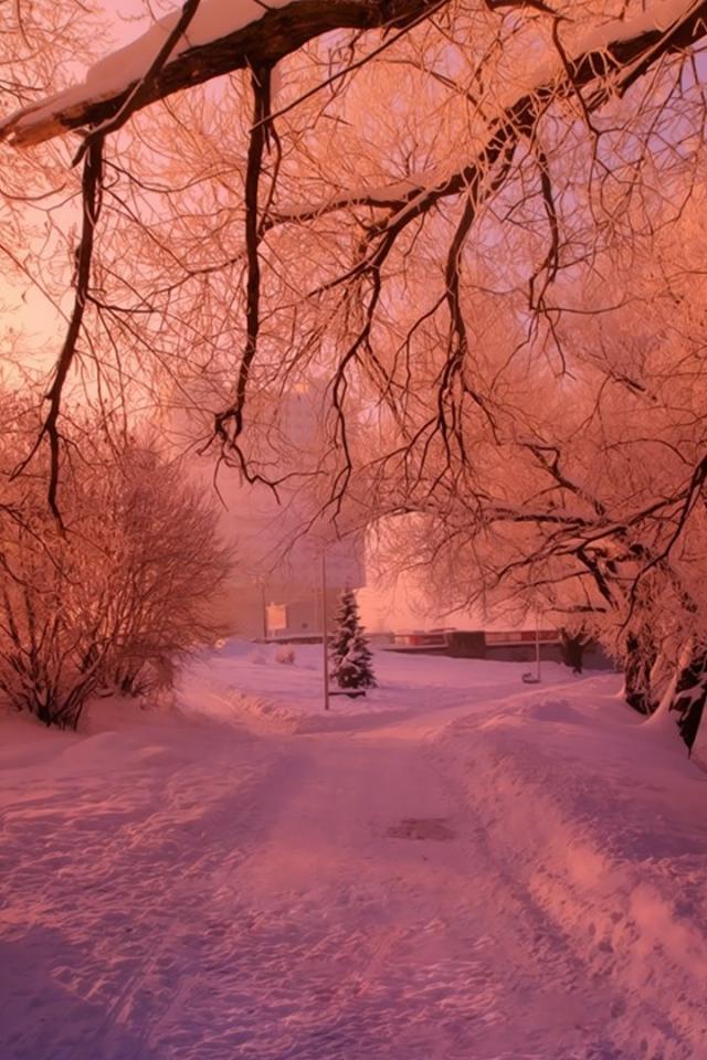 Обои Розовый снег в зимнем парке
