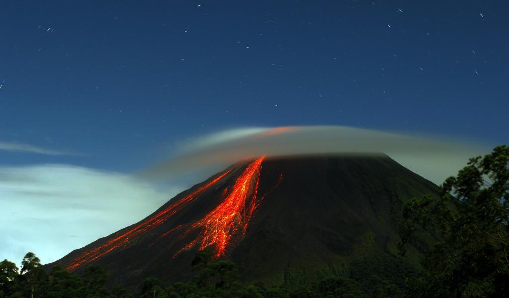 Обои Легкая дымка на вершине извергающегося вулкана