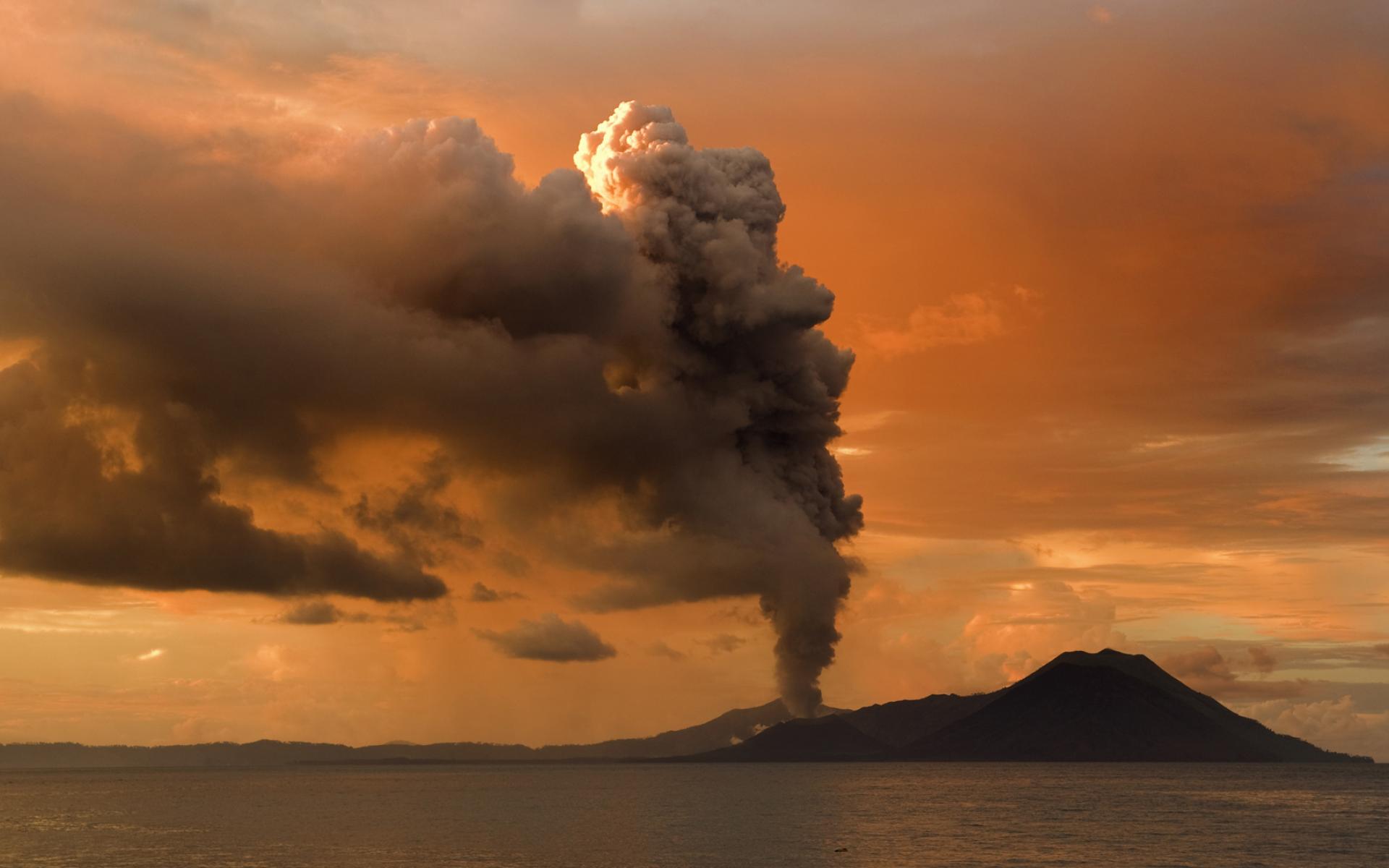Обои Извержение вулкана на острове