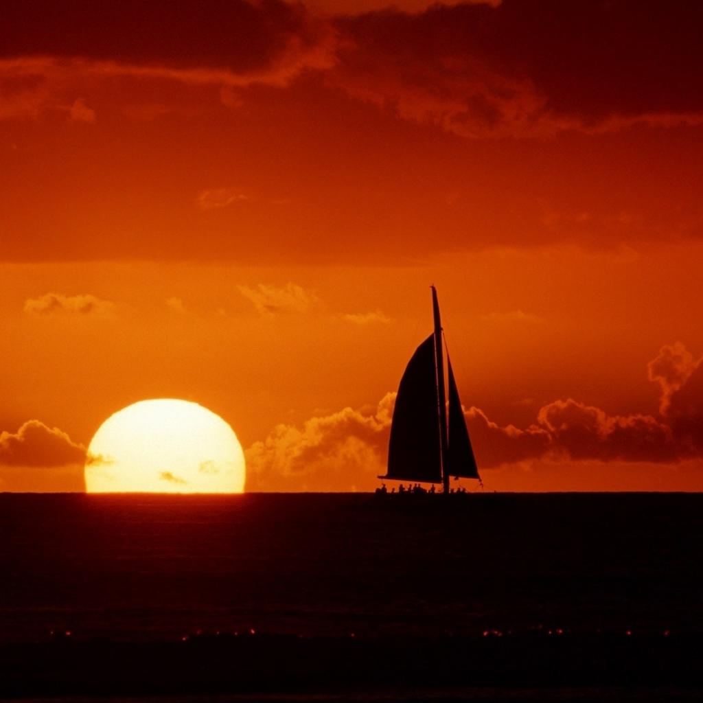 Обои Черный силуэт паруса на закате