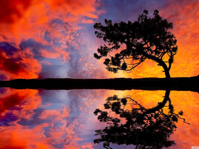 Обои Силуэт дерева на фоне красных облаков