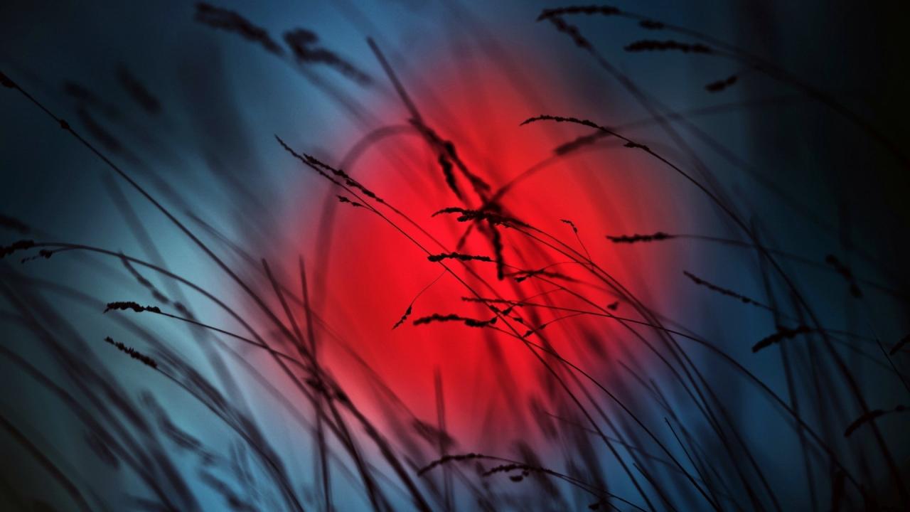 Обои Колоски на фоне красного солнца