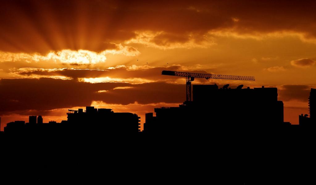 Обои Стройка на фоне заката