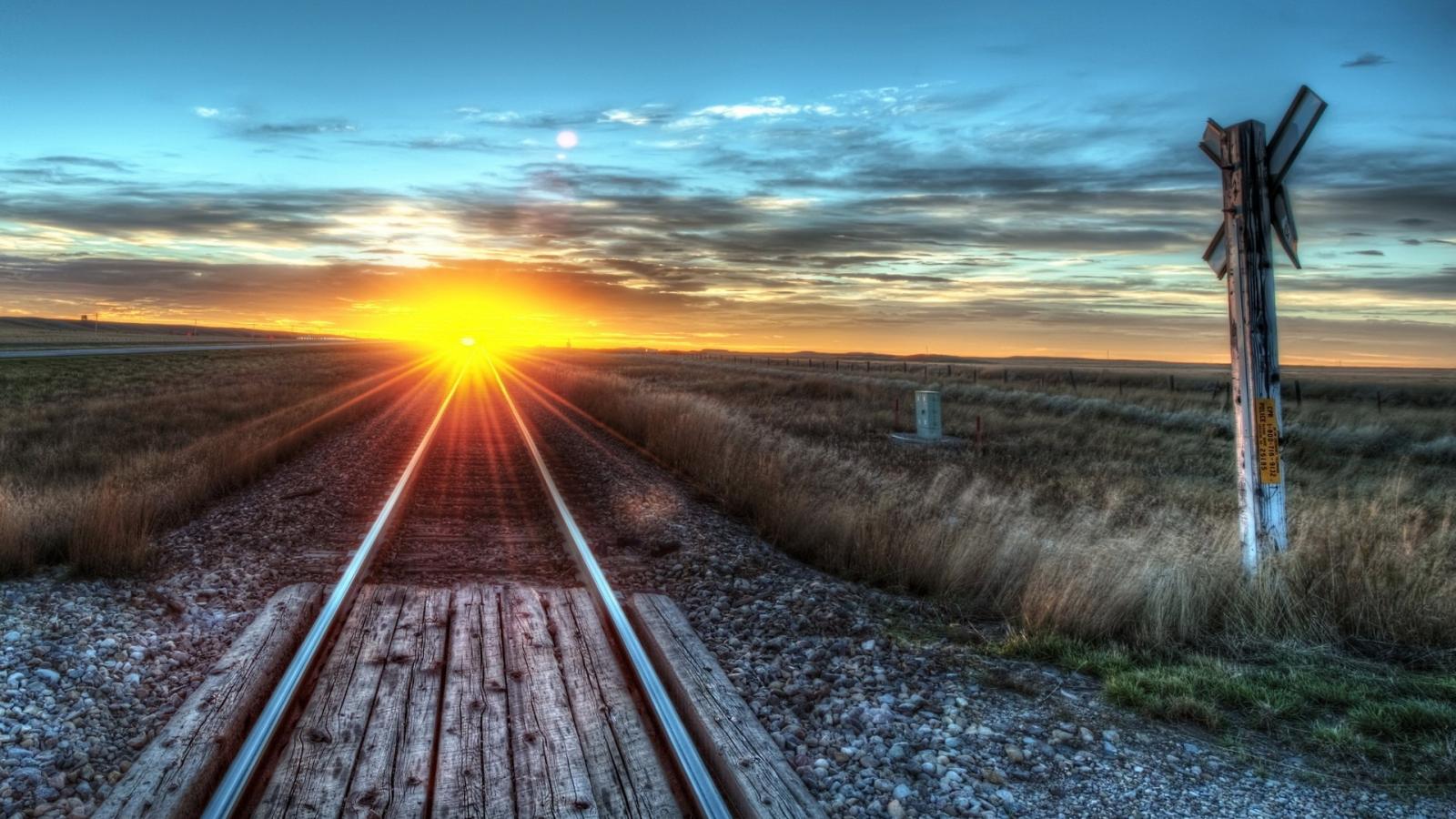 Обои Рельсы уходят на солнце, закат