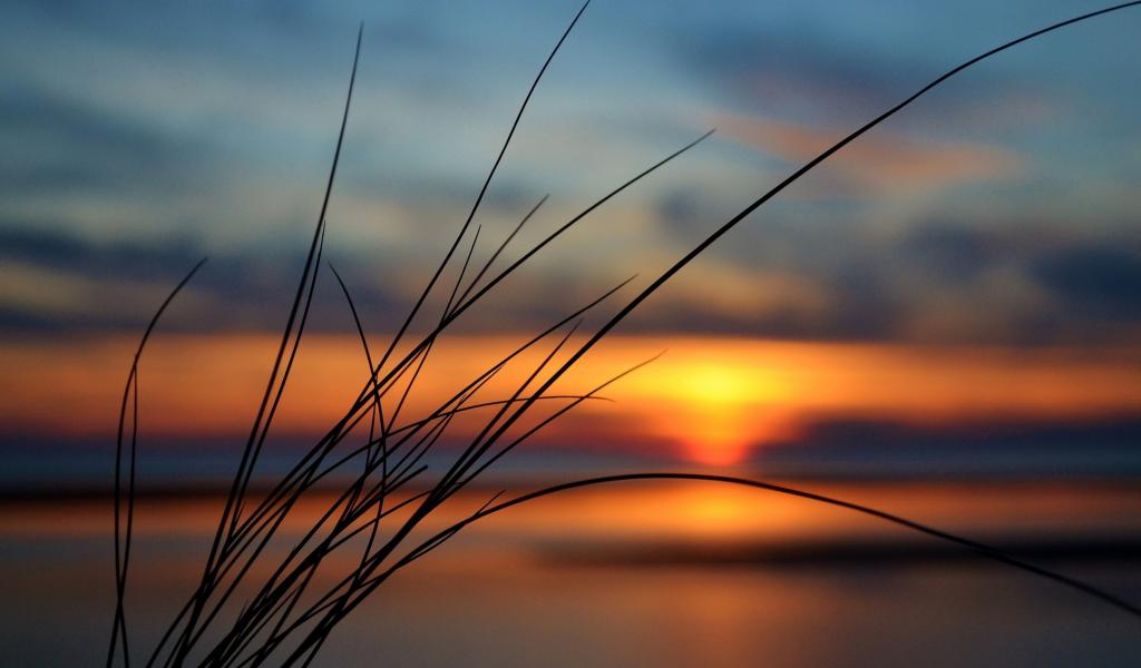 Обои Пучок травы на фоне заката