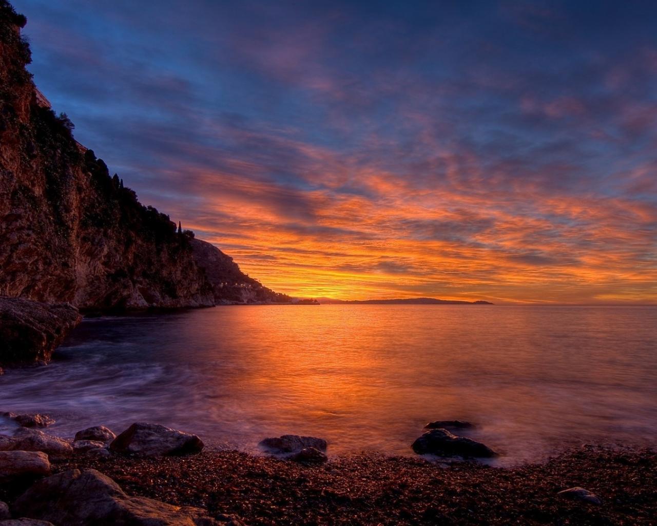 Обои Спокойная вода залива, на фоне заката