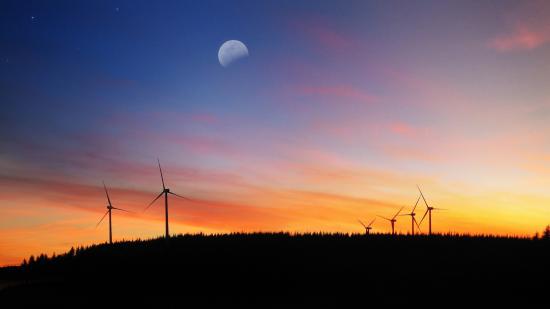 Обои Силуэты ветряков на фоне заката