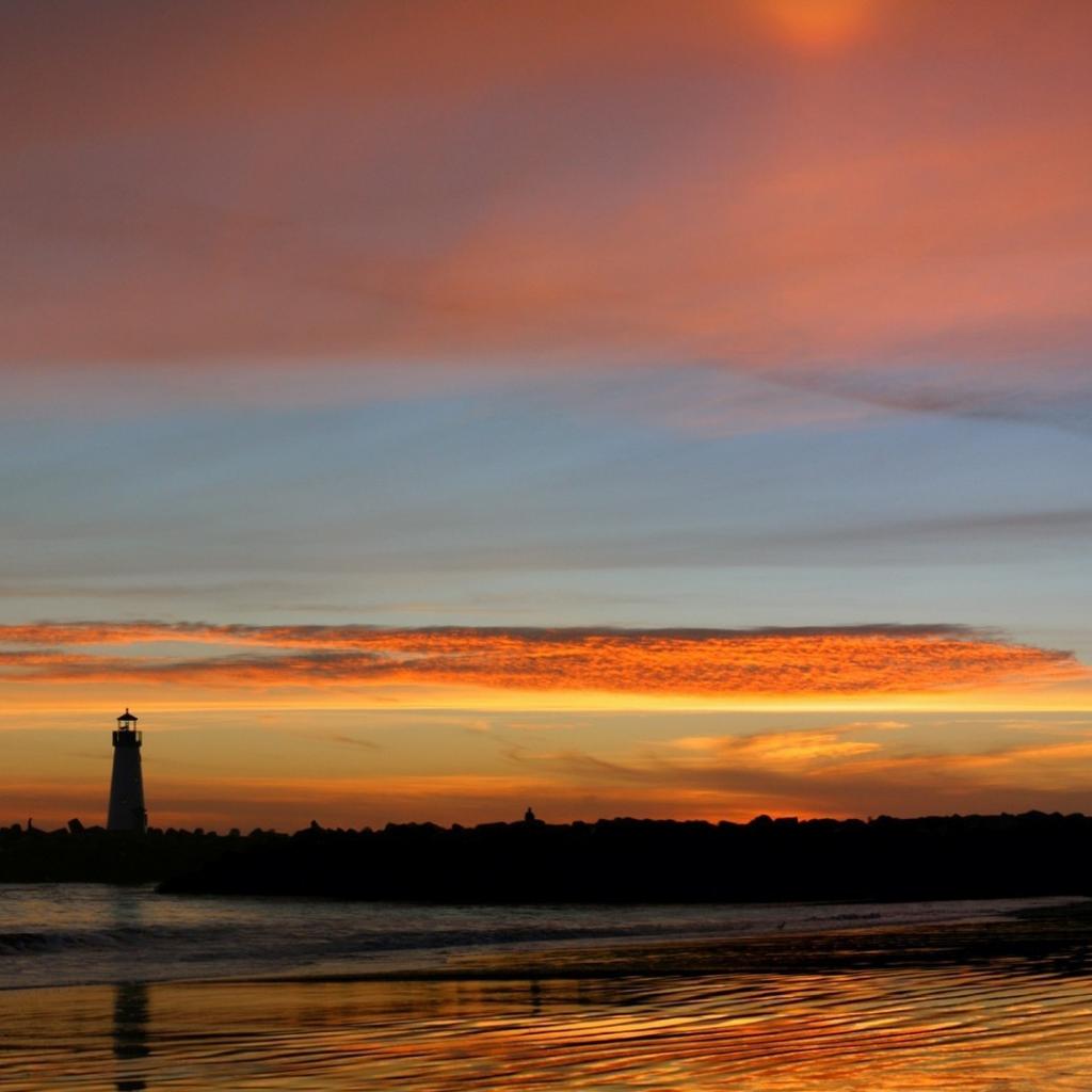 Обои Силуэт маяка на фоне оранжевых облаков
