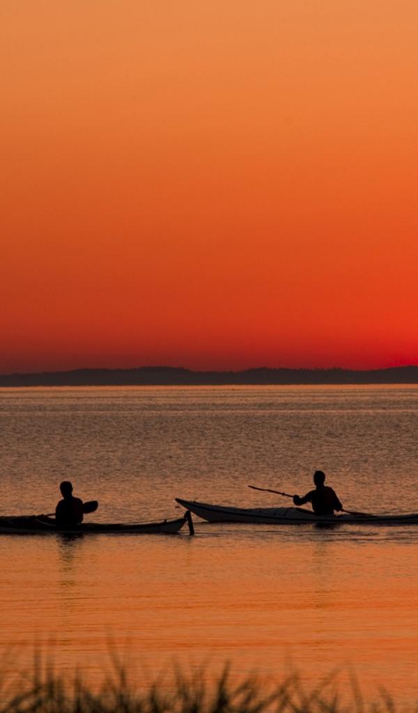 Обои Два лодочника на фоне заката