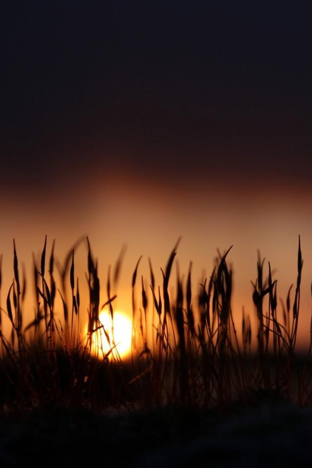 Обои Сухие стебли травы на фоне закатного солнца