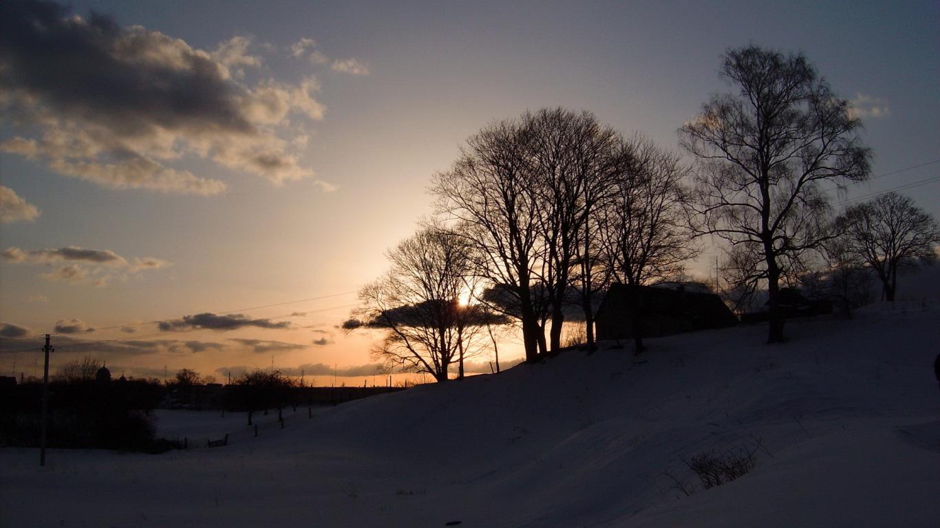 Обои Снег, Замерзшие деревья, Зимний вечер