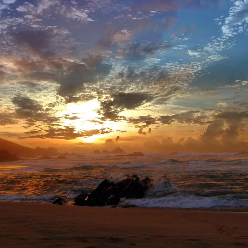 » Обои Закат на черных камнях